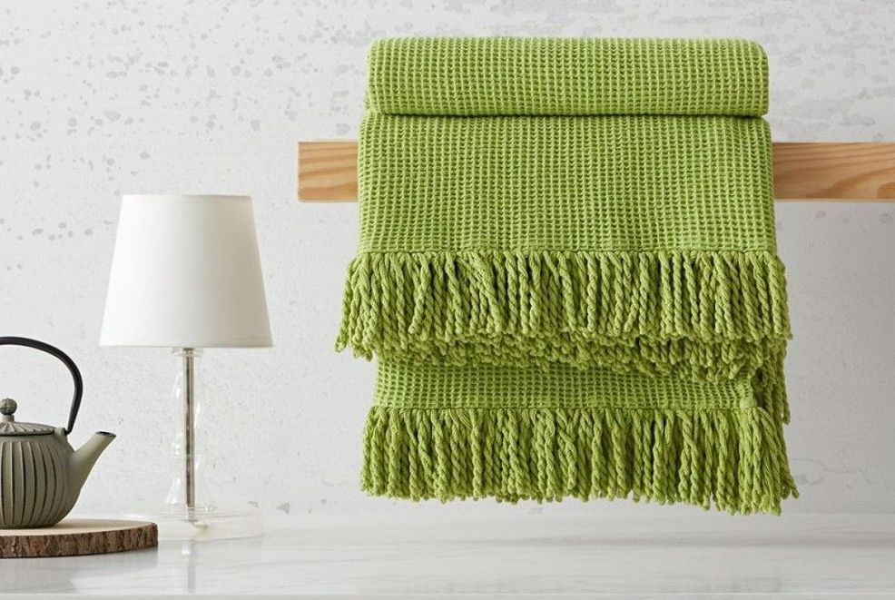 Foulard nido de abeja con flecos en dos laterales