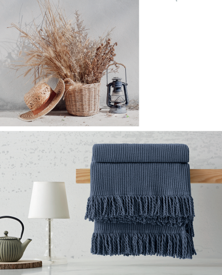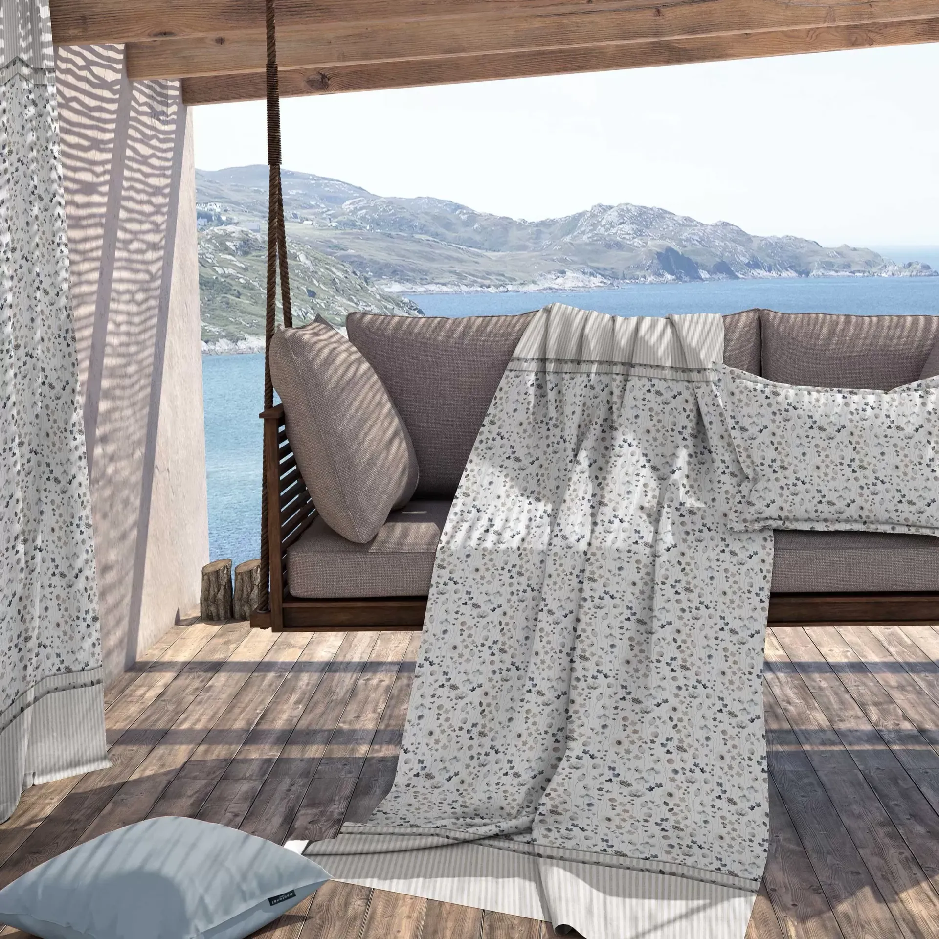 Foulard con estampado de flores silvestre en azul con 2 cojines